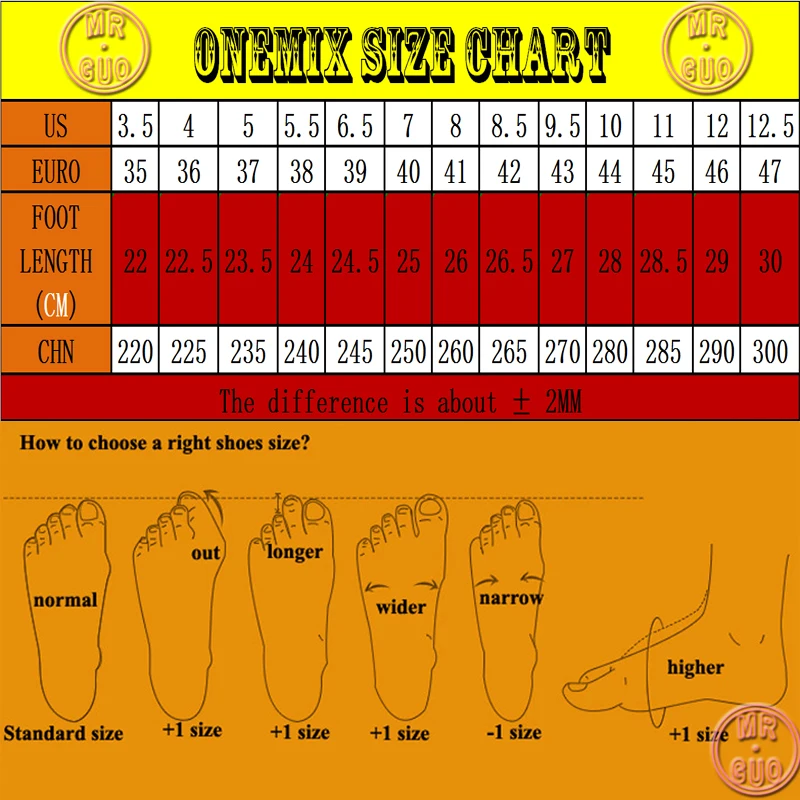 (1) Size Chart: CM=Foot Length,1cm=0.39inch. For example: 23.5cm*0.39=9.165inch.