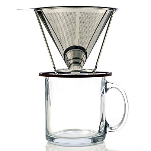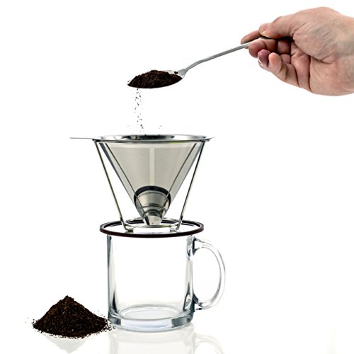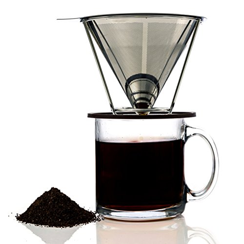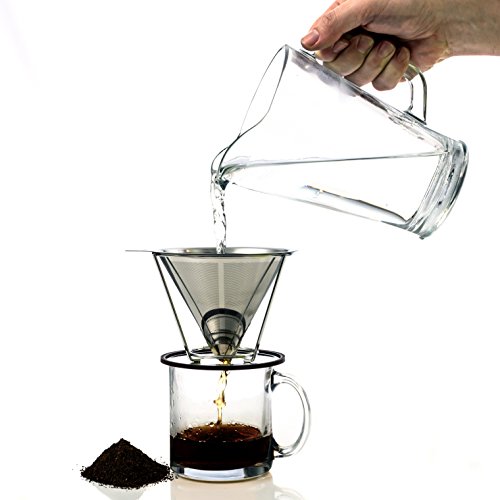 -. Title : Stainless Steel Pour Over Coffee Filter - Permanent & Reusable Coffee Maker - Paperless Dripper with Stand - Washable Ultra Fine Mesh Cone