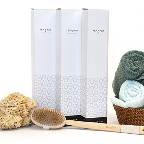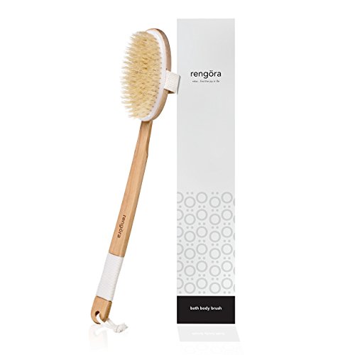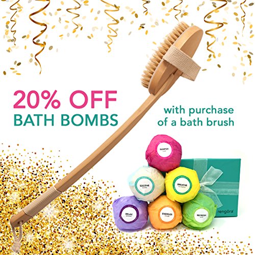 Are You Ready for Some Soothing Skin Cleansing, Gentle Exfoliating, and Invigorating Dry Brushing that Comes with a Rengora Bath Body Brush? Upgrade your Bath Shower Brush Today! ? Are you tired of your bath brush's bristles falling out? ? Have you tried other NATURAL BRISTLE bath brushes and found them too scratchy to use on your SENSITIVE SKIN? ? Do you wish your DETATCHABLE bath brush wouldn't come apart when you apply pressure or start scrubbing? ? Do you struggle to reach your entire back and wish that your current brush had a nice CURVED HANDLE to make this easier? Well look no further. Introducing the Rengora Bath Body Brush! ? Designed to maintain its bristles with less shedding than other natural boar bristle brushes ? Our 3/4 inch long bristles are softer and geared more for those who want a firm, yet GENTLER cleanse in the tub or shower ? The brush head fits snugly and firmly onto the handle, so it won't separate when scrubbing, but is REMOVABLE for travel or more direct hand-held dry brushing techniques ? The brush has a gentle curve to it so all of those hard to reach areas are much easier to get to without doing crazy contortions ? Our PREMIUM PACKAGING makes this a great BIRTHDAY GIFT for your favorite BATH LOVER! Comes with a free e-book: 5 Tips to Healthier Skin Use this brush with confidence. Get softer, smoother skin in 90 Days or your money back! 100% Satisfaction Guaranteed! Amazon Buyers Trust Our Rengora Bath Products to be Premium Quality We cannot promise this special pricing indefinitely, so purchase yours today and be on your way to cleaner, smoother, healthier skin! 0 |