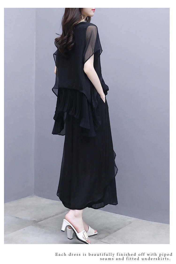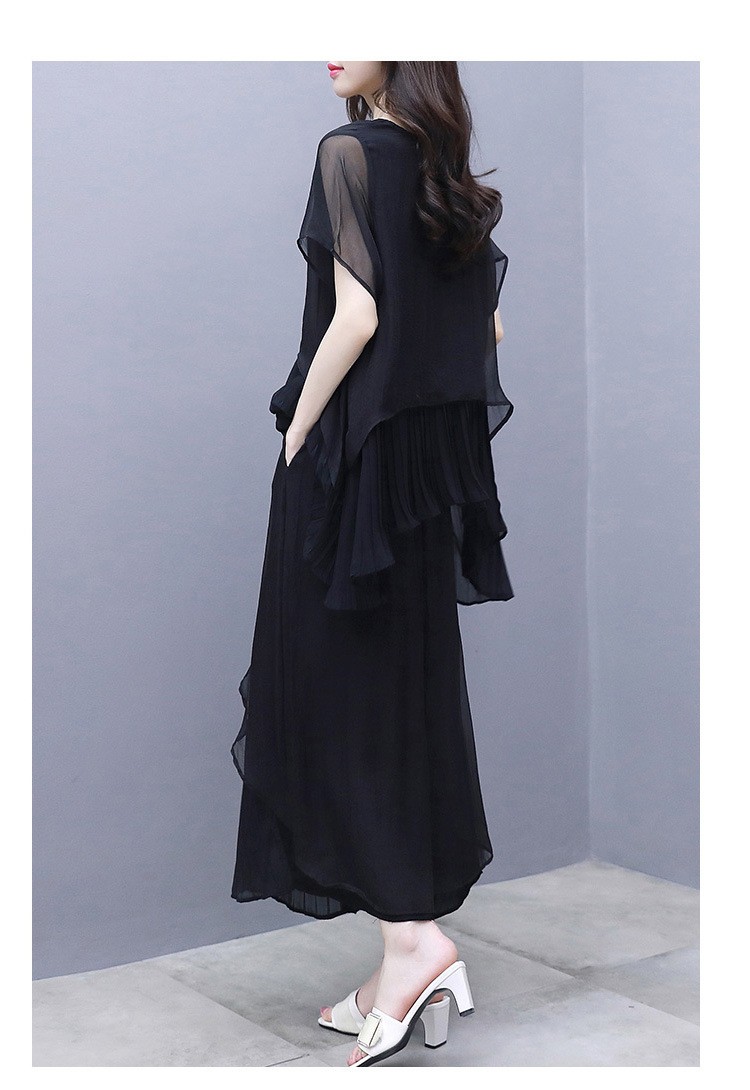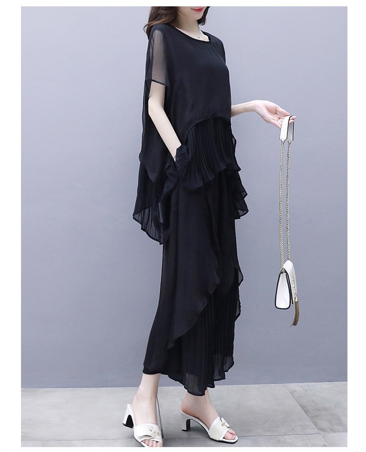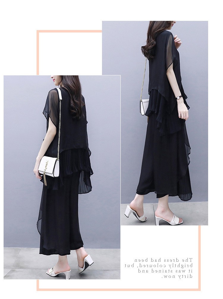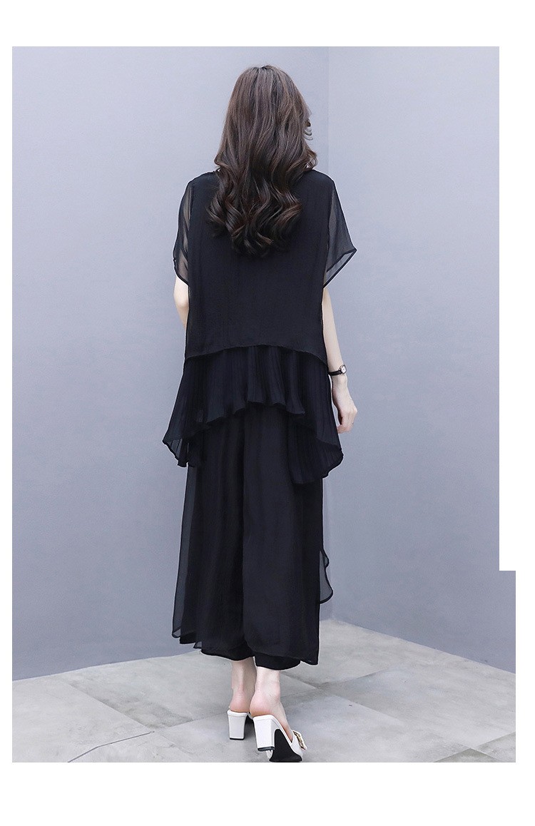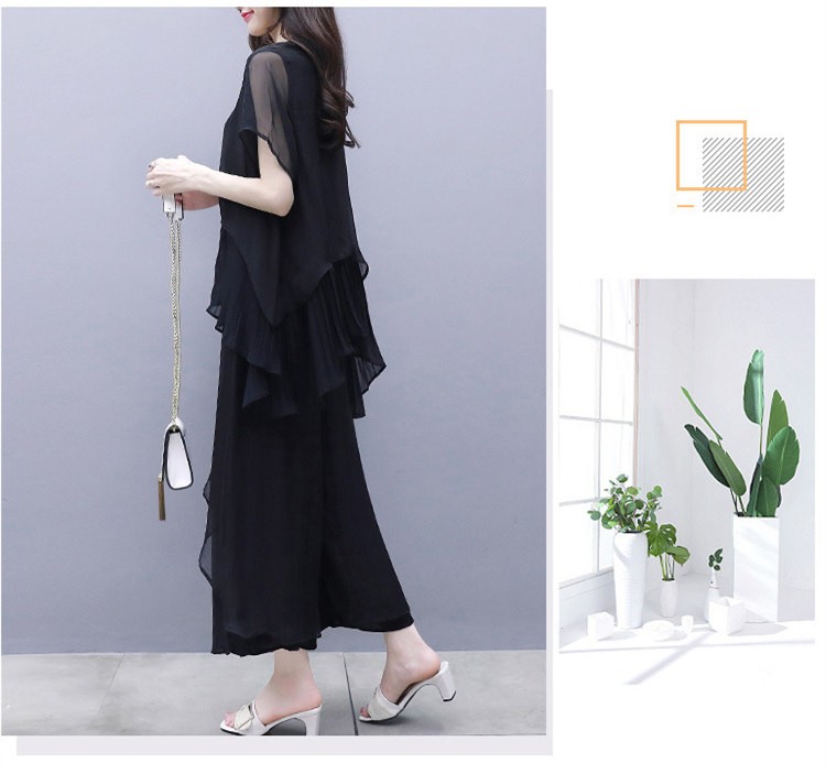 セットアップ レディース パンツドレス パーティードレス 上下セット ガウチョパンツ ワイドパンツ シフォンブラウス 二次会 通勤 OL 母 入学式 卒業式 七五三 30代40代 お洒落 着痩せ 上品★素材:ポリエステル ★生地の厚さ:普通 ★セット内容:トップス+パンツ ★生産国:中国 ★カラー:黒 (写真参考)★サイズS:着丈65 袖丈25 肩幅41 バスト120 ウエスト70 パンツ丈81 M:着丈66 袖丈26 肩幅42 バスト124 ウエスト74 パンツ丈82 L:着丈67 袖丈27 肩幅43 バスト128 ウエスト78 パンツ丈83 XL:着丈68 袖丈28 肩幅44 バスト132 ウエスト82 パンツ丈84