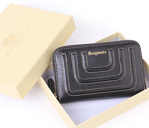 -. Title : Borgasets RFID Blocking Leather Credit Card Wallet for Women, Mini Wallet