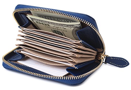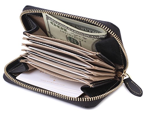 -. Feature : High Quality Genuine Leather, / Features:1 zippered compartments, and 6 accordion folds. / Block identity theft with this palm-size RFID Blocking wallet. / Convenient pockets for coins/change or cash bills wallet / Measures 5.12" x 3.35" x 0.98"