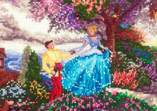This collection is based on original paintings by Thomas Kinkade. Each painting is his interpretation of the most cherished and recognizable Disney characters. Each kit contains 18 count Aida, cotton floss, decorative thread, needle, chart, and instructions. Finished size: 5" x 7". Design: Cinderella. Artist: Thomas Kinkade. Made in USA.Feature