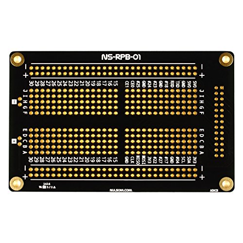 The half-sized Raspberry Pi proto breadboard is a proto board that is also combined with a Pi Cobbler breakout; solder the 2x13 box header in to get all the labeled breakouts with plenty of prototyping space, power rails, and mounting holes to easily attach the PCB to your project box.