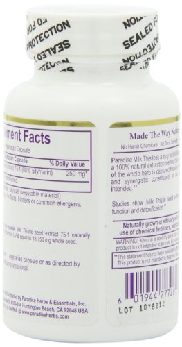 Paradise Herbs Milk Thistle 75:1 80% Vegetarian Capsules, 60 Count