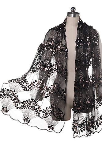 Binding : Apparel Product Description About Babeyond vintage shawl Babeyond is committed to provide luxury shawl and best service to you and your loves. We have never stopped remodeling our products into trendy market which satisfied our customers. Vintage shawl with exquisite and delicate decorations (see-through evening shawl and wrap embellished with gold sequined shell, embroidery decoration, open front design and chic wavy hem.) perfectly show your 1920s fashion. Also charming with any other types of dresses, sweater, shirts, etc. Stylish 1920s shawl match perfectly with your 1920s flapper outfit and make you stand out on Gatsby themed party, prom, pageant, ascot race, wedding party, cosplay costume, fancy dress party, ecc.