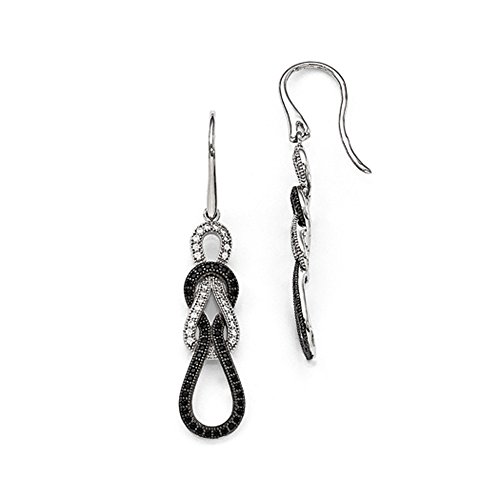 -. Binding : Jewelry -. Brand : The Black Bow -. Department : womens -. Feature : Rhodium-plated sterling silver design / Micro pave set 136 cubic zirconia stones / Approximate size 9 x 45mm / Average weight is 4.55 grams / Includes our custom gift box -. Label : The Black Bow -. Manufacturer : The Black Bow -. MPN : E10530 -. NumberOfItems : 1 -. PackageQuantity : 1 -. PartNumber : E10530 -. ProductGroup : Jewelry -. ProductTypeName : FASHIONEARRING -. Publisher : The Black Bow -. Studio : The Black Bow -. Title : Pave Black and White CZ Love Knot Dangle Earrings in Sterling Silver