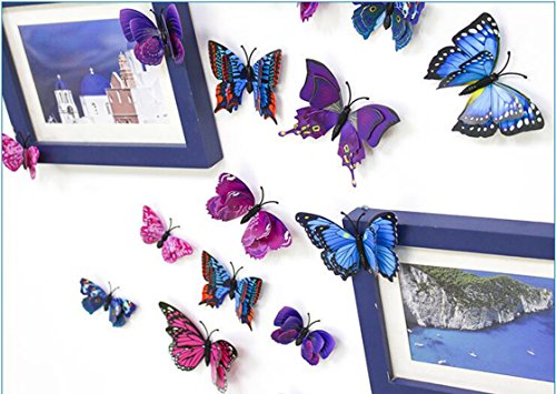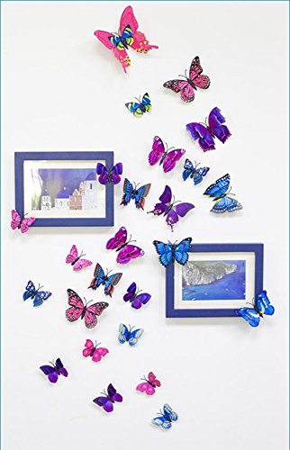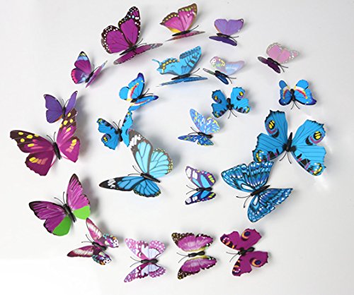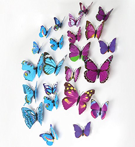 24 packs Butterfly Random mixed packaging DIY Detachable 3D special lively butterfly art decorative wall stickers Children wall refrigerator art decorations (12 pcs Blue + 12 pcs purple)