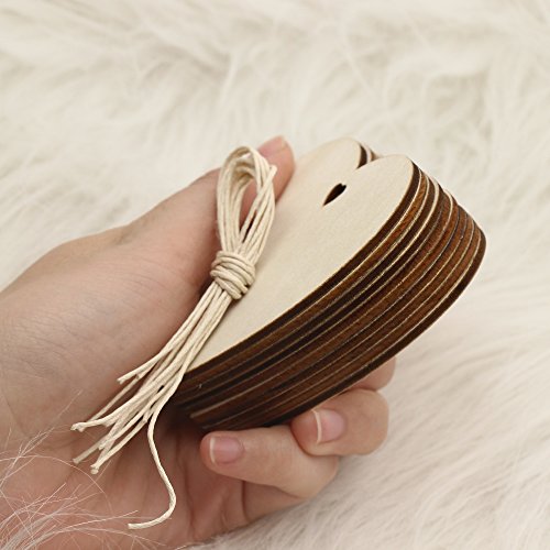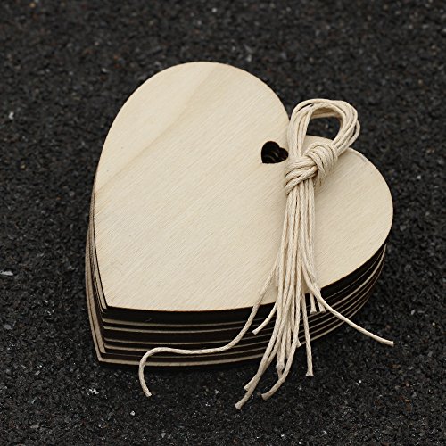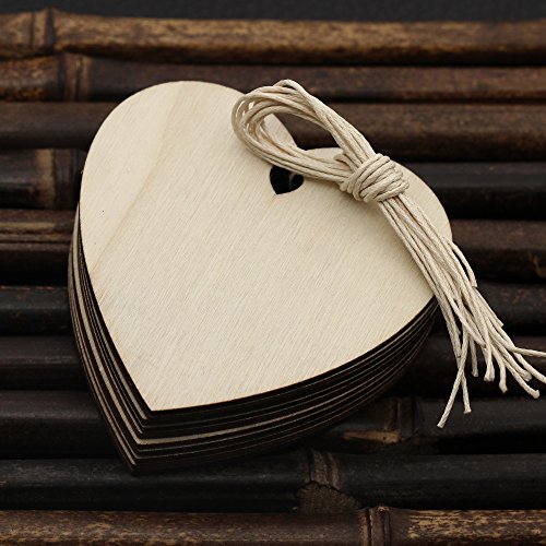 Pack of 10Pcs 3.15Inches Wooden Heart Kids Crafts Christmas Tree Ornaments Wood Hanging