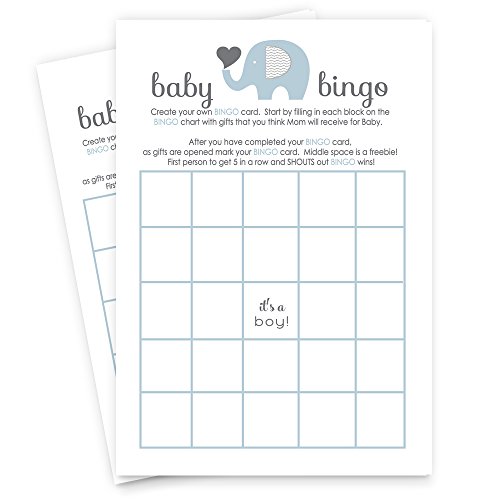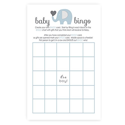 Blue Elephant Baby Shower Bingo Game Card ( 25 Pack )
