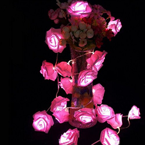 - Package: 1 × pink 20 led battery rose flower string lights in 1 opp bag.