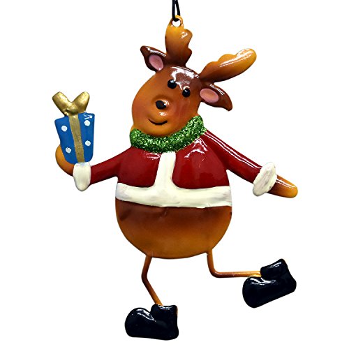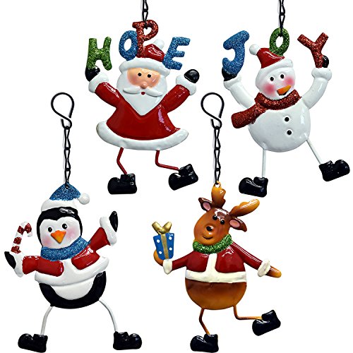 Metal Tin Christmas Ornaments 8 Pack, 2 of Each Santa Claus Snowman Reindeer Penguin Hanging Holiday Party Decorations By Gift Boutique