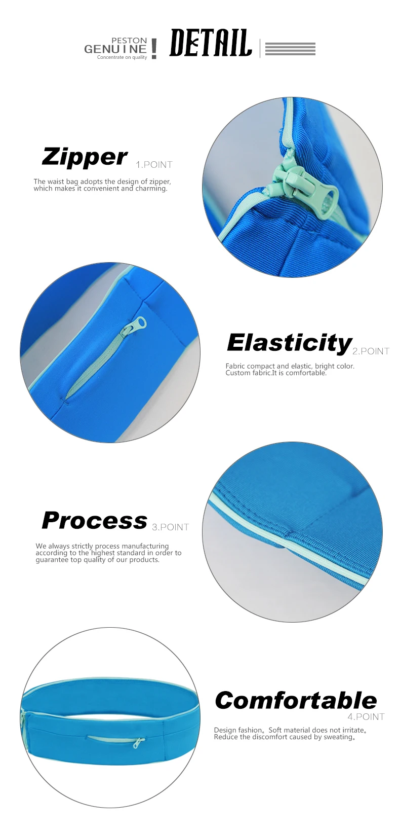 Feature2:Exposed zipper closure at seam, Contrast piping,