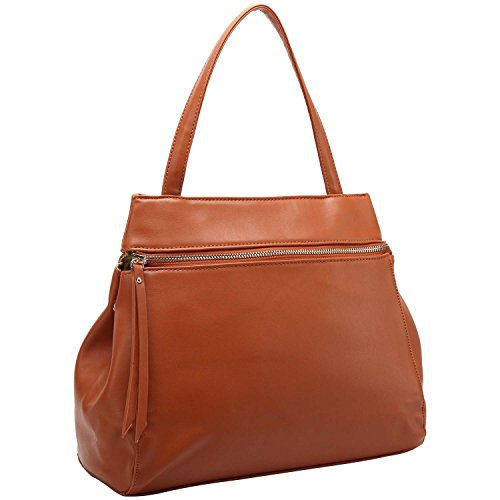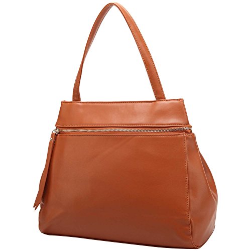 Store your essentials in this Edgy Classy style handbag that will last you years to come by FASH Limited. Make your friend and family envy you with its unique front zip closure and design. The gold-tone zipper has a distinctive tassel like zip puller made using synthetic leather, hence giving the handbag a very edgy and classy look at the same time. Pair this handbag with a formal or a weekend attire, it is sure to give you this bold modern day woman. Its semi-glossy exterior body is made from high quality synthetic man-made leather. Apart from this the handbag also features a beautiful, strong and high quality fabric lined interior, 1 zippered and 2 open slip through/phone wall pockets. It has a single compartment with a height of approximately 9.8" and length of 12.5" this bag is capable of taking in a lot of stuff. Get this exclusive handbag at an extremely affordable price