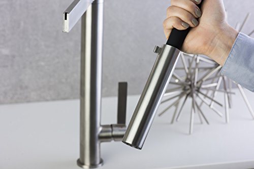 DAX Single Handle Pull Down Kitchen Faucet, Stainless Steel Shower Head and Body, Brushed Finish, Black, DAX-S1450, Size 11 x 24-1/2 Inches
