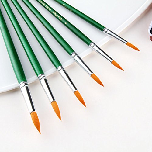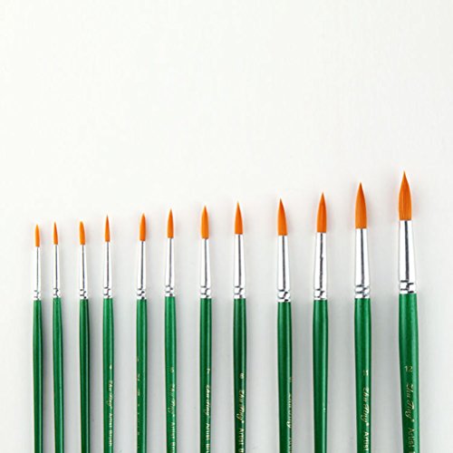 12 * Paint Brushes Art Set for Acrylic/Oil/Watercolor Painting Round Pointed Tip Nylon Wool Green