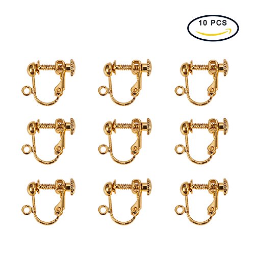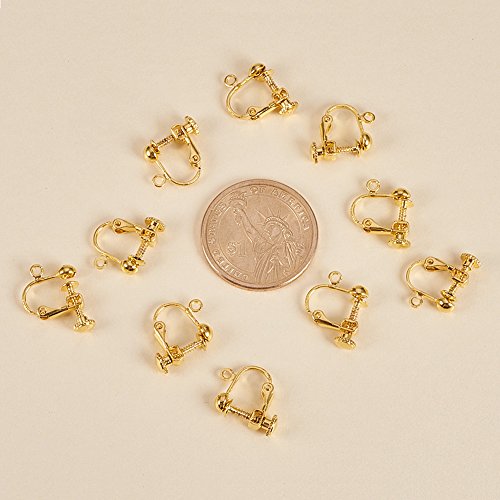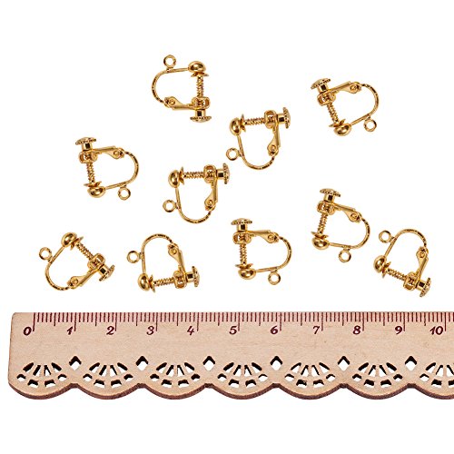 Pandahall 10pcs Golden Brass Clip-on Earring Components for Non-pierced Ears 13.5x17x5mm