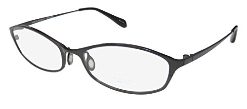 Brand: Oliver Peoples Style: Katerina Gender: womens Frame Type: full-rim Frame Material: titanium Case: eleganzo The frame is fully rx-able and can be fitted with prescription and/or tinted lenses at most optical stores. Please note that factory demo lenses have a logo stamped on them in ink. This frame provides comfortable fit and flatters a variety of face shapes. The hardware parts of the eyeglasses are made of titanium. This material is known for it's durability, light weight and corrosion resistance. This metal is also hypoallergenic. It is recommended by eye doctors for people with sensitive skin who otherwise might be allergic to standard stainless steel metal frames. Please keep in mind that original case is not included with this frame. However, we will include an Eleganzo hard case at no extra charge to keep your eyeglasses protected. The glasses are made in Japan. These eyeglasses retail for $420.00 at upscale stores that carry designer frames. Save your money and get them here! The pictures cannot fully reflect the beauty of this piece of designer eyewear. These eyeglasses look even more elegant in real life. 0 |