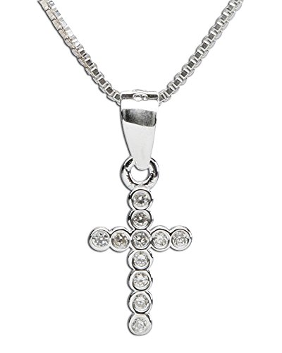 -. Feature : Great First Communion Gift for Girls / Sterling Silver Cross Charm with CZs (15mm x 8mm) / Sterling Silver High-Quality 14 inch Box Chain / Necklace Comes in a Beautiful Gift Box / Keepsake Quality, Durable