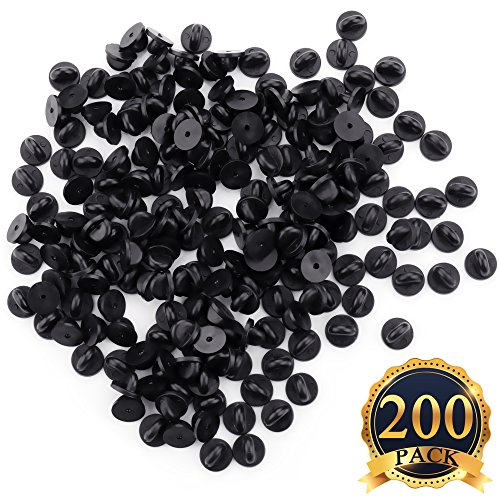 SUBANG 200 Pieces Pin Backs PVC Rubber Pin Keepers, Black