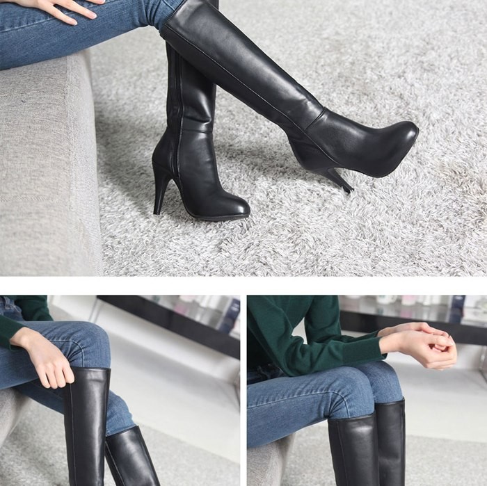 商品名:ロングブーツ レディース ピンヒール ロング丈 プラットフォーム 厚底 2017 秋冬 ファッション 靴 婦人靴