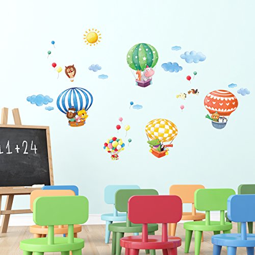 Decowall DA-1406B Animal Hot Air Balloons Kids Wall Decals Wall Stickers Peel and Stick Removable Wall Stickers for Kids Nursery Bedroom Living Room