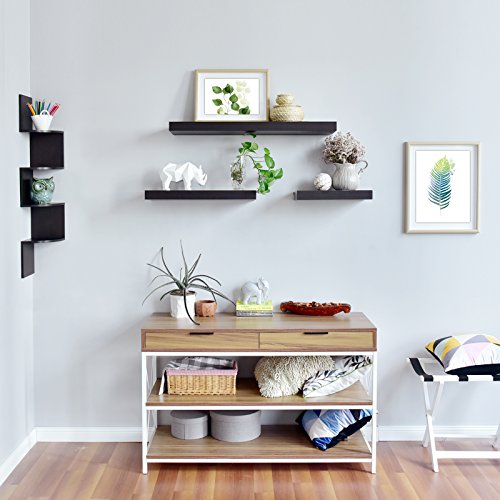 - CONTEMPORARY IN STYLE. Buy two or three together to fill an empty wall space,ideal for corner placement and display functional items like kitchen items, books or children's stuffed animals