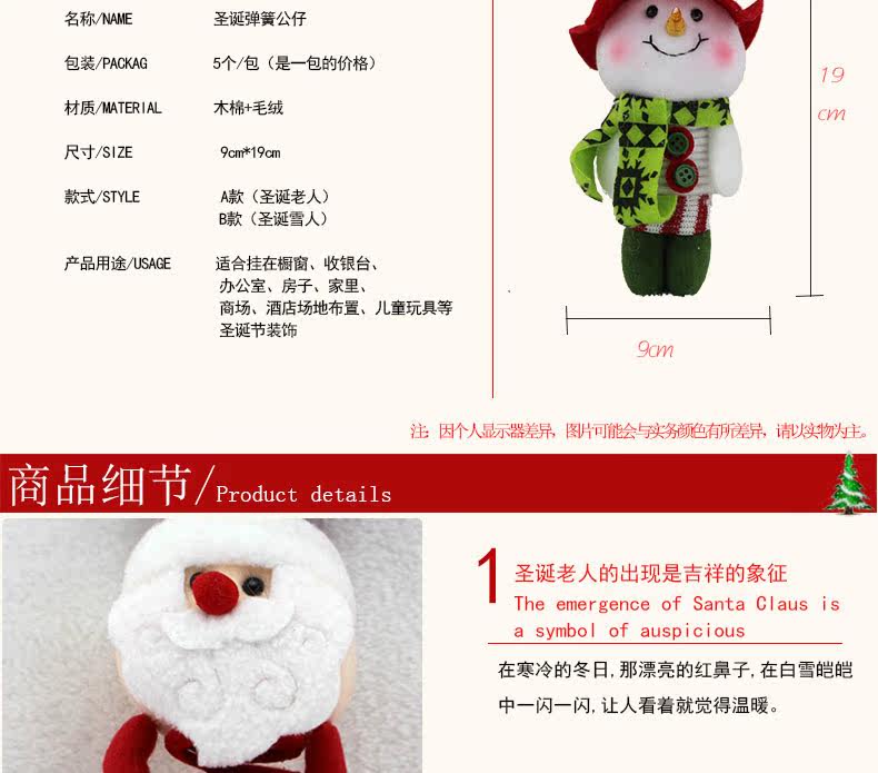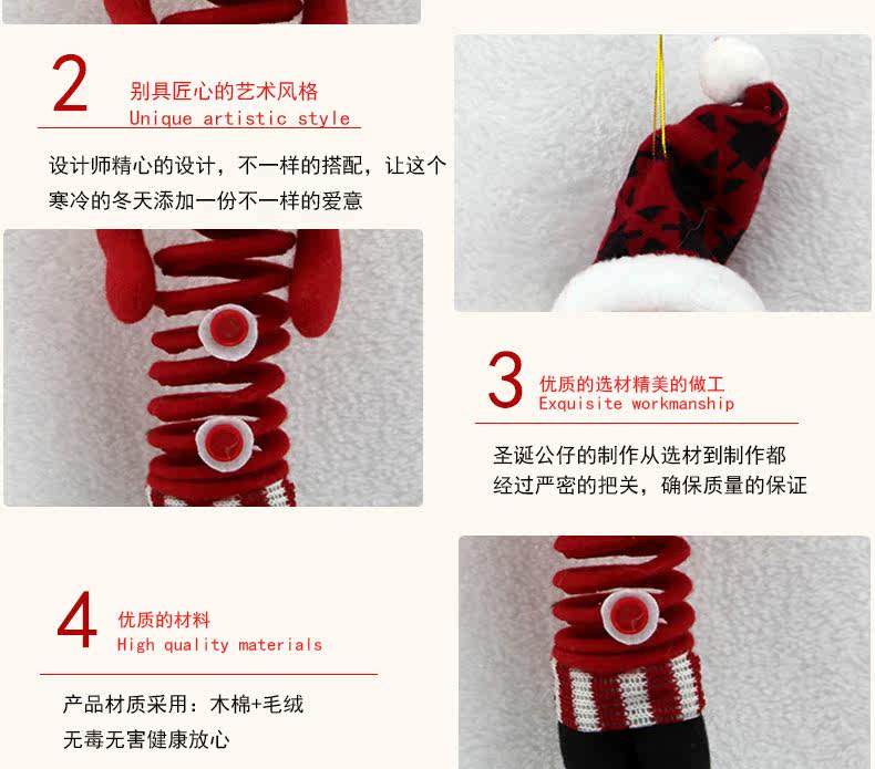 敏可 圣诞弹簧公仔 布娃娃圣诞节礼物 酒店 商场摆设装饰品 挂件