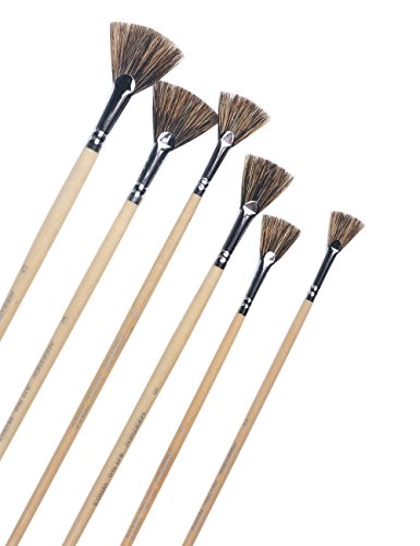 MEEDEN Fan Brushes Hog Boar Bristle Paint Brushes Natural Bristle Paint Brush Set for Acrylic Oil Painting, Long Handle, 6 PCS