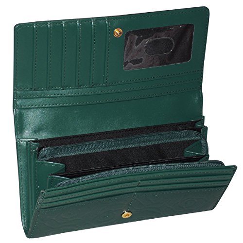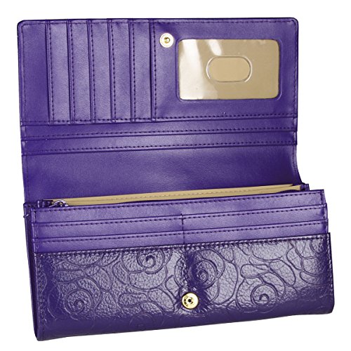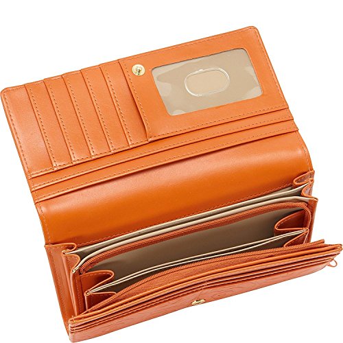 -. Feature : Naturally milled leather custom dyed / Satin gold tone logo plaquehardware / Full flap snap closure and outside zipper coin purse / Two ID windows, multiple credit card slots / Multiple slip pockets and one gusseted slip pocket