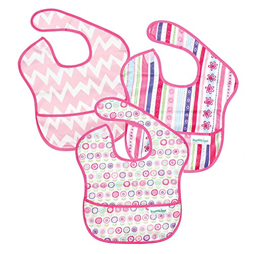 Bumkins Waterproof SuperBib 3 Pack, G8 (Ribbon/Bloom/Pink Chevron) (6-24 Months)