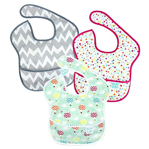 Bumkins Waterproof SuperBib 3 Pack, G67 (Umbrella/Raindrop/Pink Chevron) (6-24 Months)