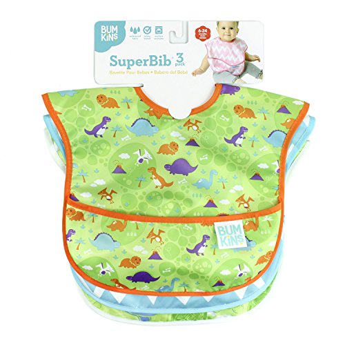 Bumkins Waterproof SuperBib 3 Pack, Boy (B09-Turtle/Dino/Blue Chevron) (6-24 Months)