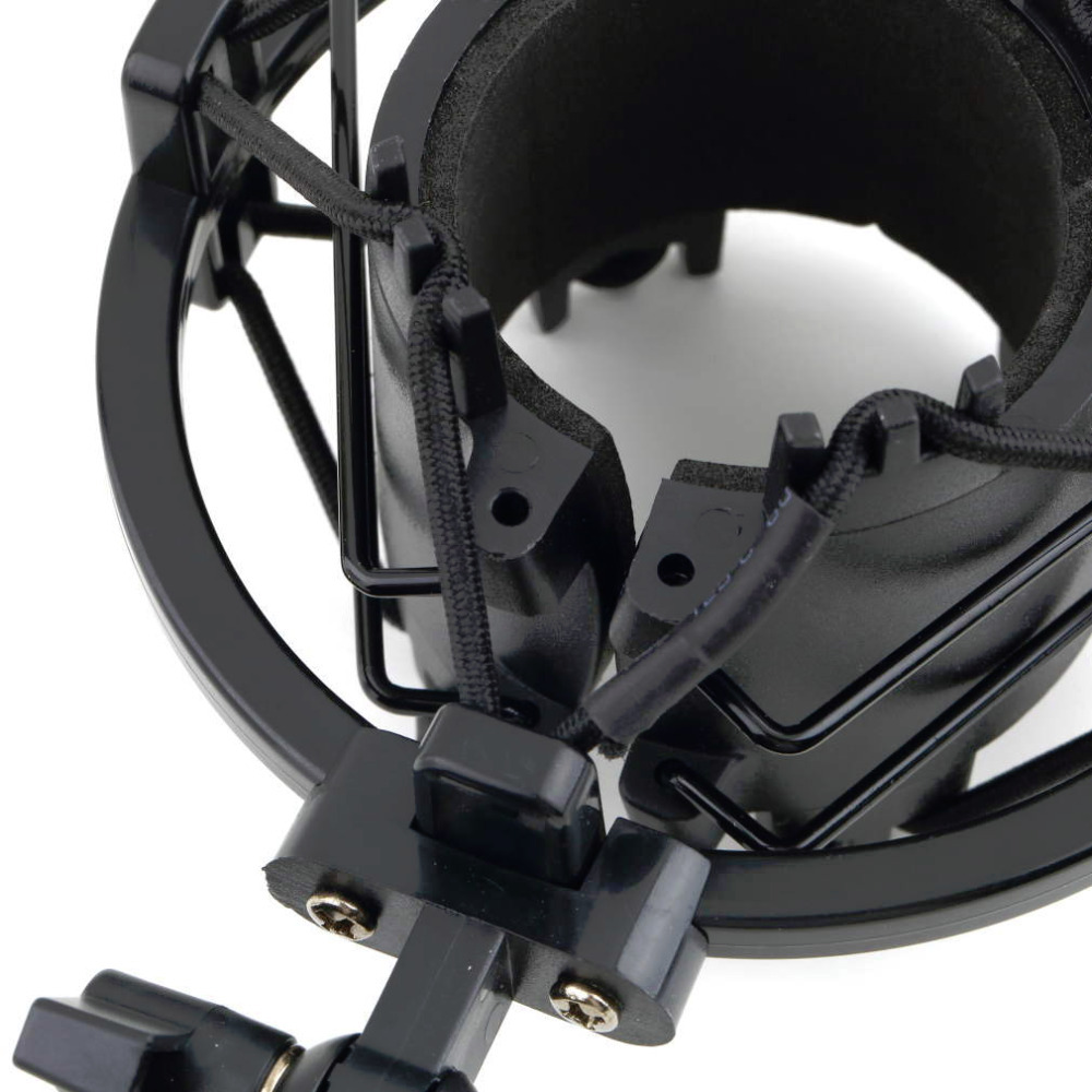 | Features: Sturdy and durable Stable and Affordable Professional studio shock mount to support large diaphragm condenser microphones Ideal for radio broadcasting studio voice over services !#!amp!*! audio recording studios Specifications: Material: Plastic Bearable load: 3KG Mount diameter: 44 - 46mm Fit for microphone diameter: 43-50mm Color: Black Net weight:120g Package content: 1x Shock Mount |