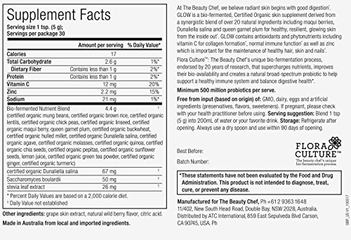 -. Feature : A New + Improved Bio-Fermented Superfood Beauty Blend With More Antioxidants, More Minerals, More Vitamins & Extra Probiotics Designed To Improve Gut Health + Enhance The Skin From The Inside Out / Contains A Wealth Of Nutrients + Probiotics, Which Provide Extraordinary, Skin-Perfecting Benefits. Combining A Blend Of Certified Organic, Naturally Fermented Ingredients To Nourish + Enhance Skin From The Inside-Out, Glow Advanced Is A Drinkable Tonic That Supports Efficient Digestion & A Healthy Gut, Which Naturally Results In Long-Lasting Skin Health + Radiance / Helps Synthesize Collagen In The Skin + Also Helps Contribute To Normal Skin Function As Well As Support Digestive Health / No Artificial Colorings, Flavorings Or Preservatives, Lactose, Dairy Or Sugar / Each Jar Contains 30 Servings & Can Be Mixed With Water, Your Favorite Smoothie Or Used In One Of The Beauty Chef's Fantastic Recipes!