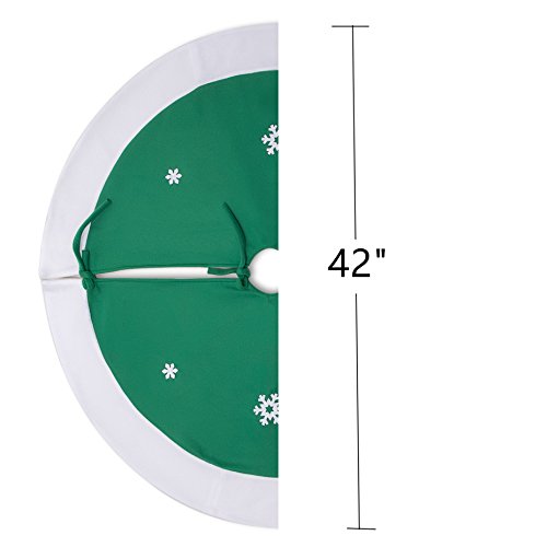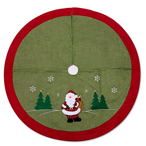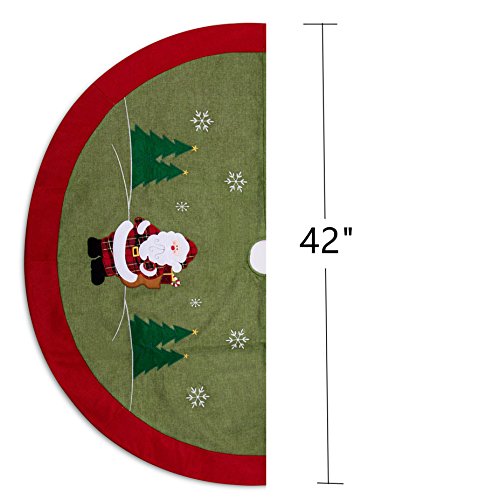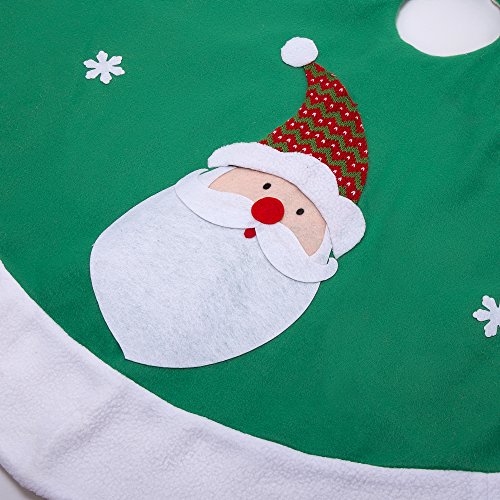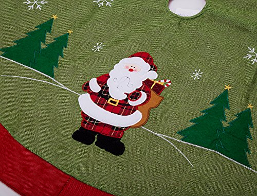IPEGTOP 42" Christmas Tree Skirt Holiday Christmas Woodland Collection Decoration with Snowflake Santa Claus, Rustic Green and White Rim