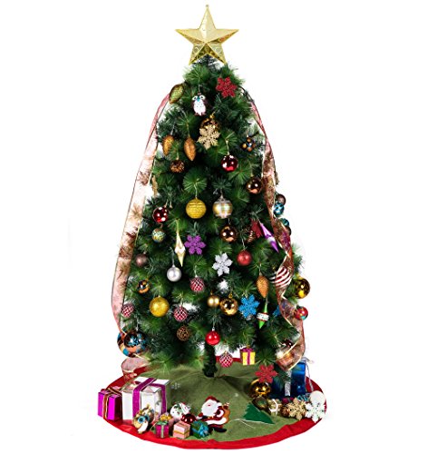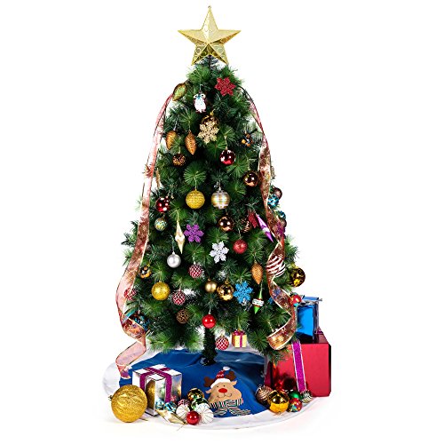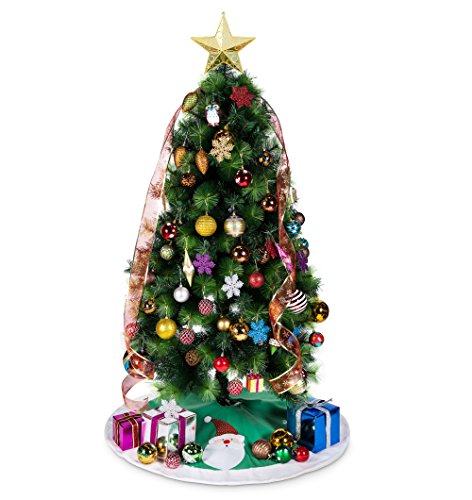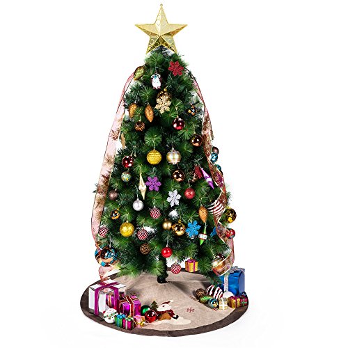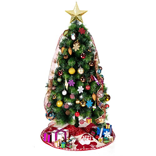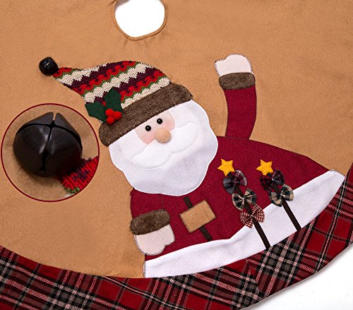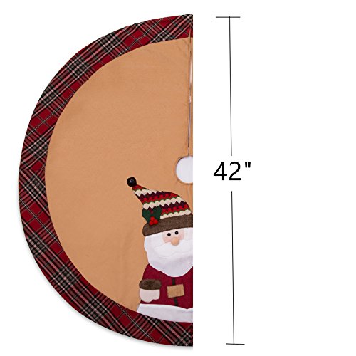 IPEGTOP 42" Christmas Tree Skirt - Santa Xmas Tree Skirt Holiday Decoration Ornaments Camel Non-woven & Tartan Border