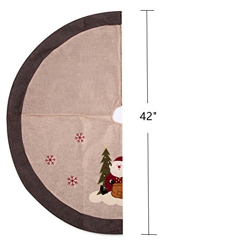 IPEGTOP 42" Christmas Tree Skirt Burlap Woodland Collection Rustic Embroidery Snowman Xmas Tree Skirt Holiday Decoration Ornaments