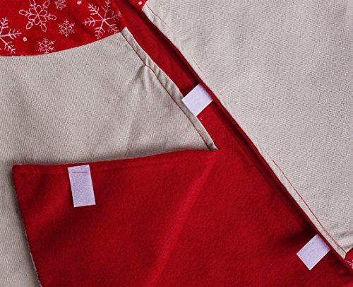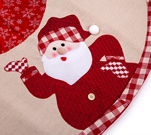 IPEGTOP 42" Burlap Rustic Christmas Tree Skirt - Classic Holiday Decorations Woodland Santa Snawflake Embroidery - Begie Red Rim