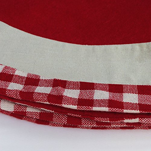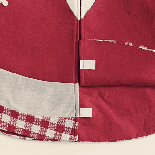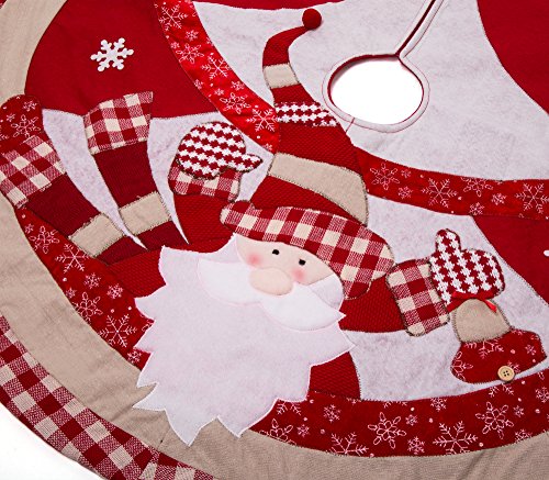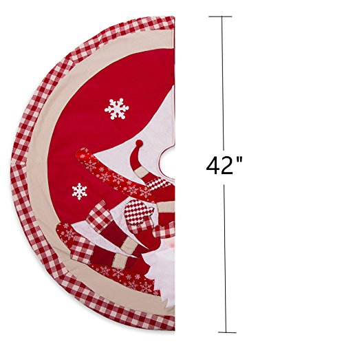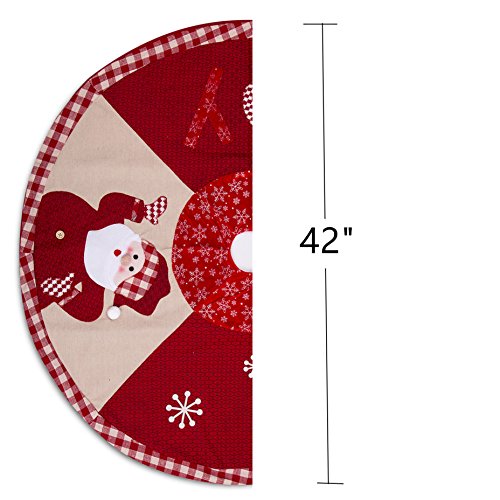 IPEGTOP 42 inch Christmas Tree Skirt - Xmas Tree Skirt Holiday Decoration Joy Character Snowflake Lovely Santa - Red and White Plaid Rim