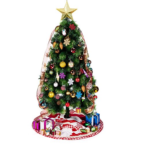 IPEGTOP 42" Santa Christmas Tree Skirt - Snowflake Holiday Decorations Plaid Rim - Non-woven