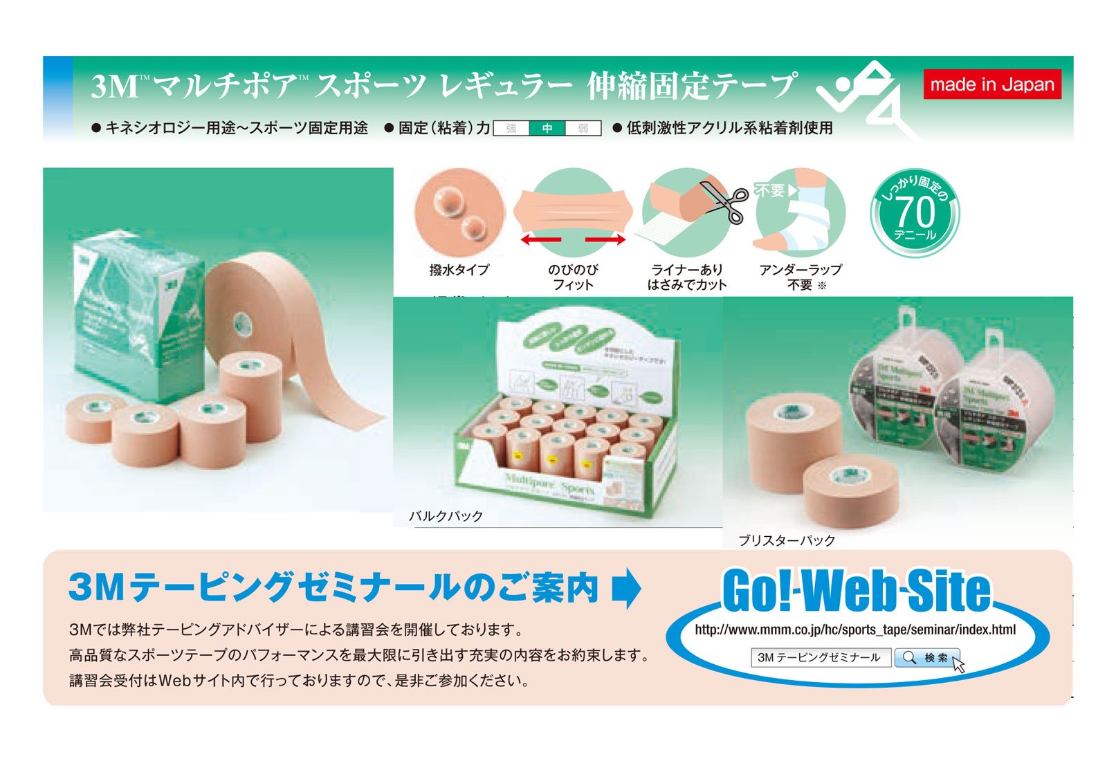 3M (3M) Kinesiology taping multi pore Sport regular 25mm 12 Volume 274325