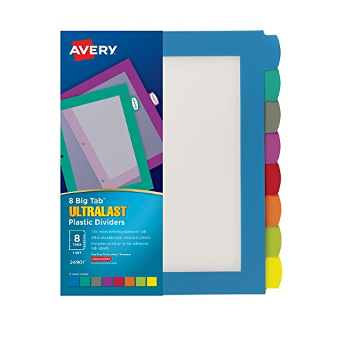 Avery Ultralast Big Tab Plastic Dividers, 8 Tabs, 1 Set, Multicolor (24901)