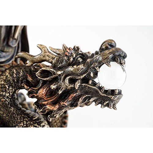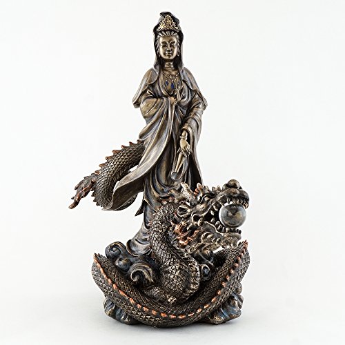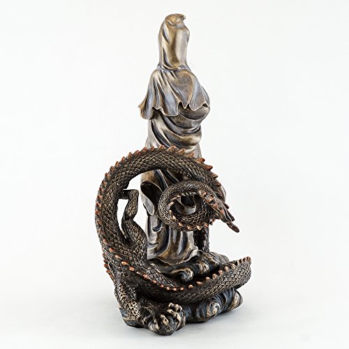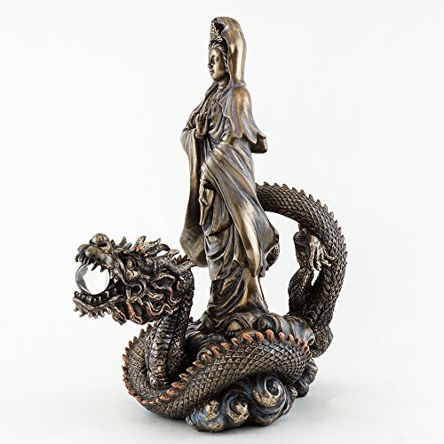 Top Collection 13" H 10.5" L Guan Yin Riding Dragon Statue. Bronze Powder Mixed with Resin - Bronze Antique Finish. East Asian Goddess of Compassion and Mercy.
