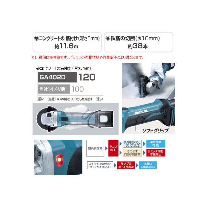 원본상품명:マキタ 充電式ディスクグラインダ 18V 3.0Ah 100mm 本付バッテリ1個搭載モデル GA402DRF