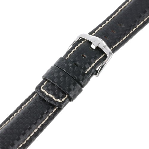 -. Feature : High-tech carbon fiber-look leather with a rubber lining / Remborde construction; l length=120x80mm; 22m wide at lug end & 20mm wide at buckle end / Sporty square padding and white contrast stitching / White buckle / Water resistant to 660 feet (200 M): suitable for recreational scuba diving