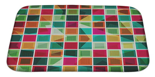 Gear New Colored Squares Pattern Bath Rug Mat No Slip Microfiber Memory Foam