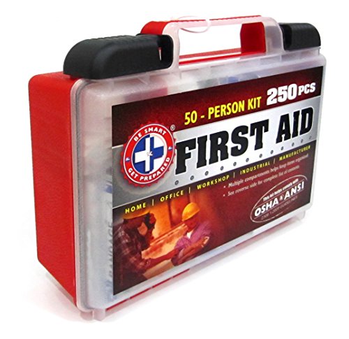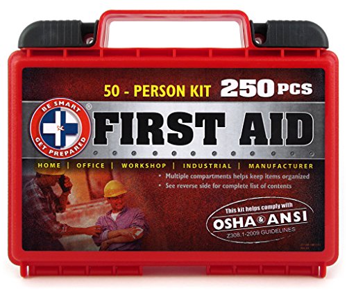 -. Binding : Health and Beauty -. Brand : Be Smart Get Prepared -. EAN : 0020424101138 -. Feature : A comprehensive selection of first aid items / Supplies up to 50 people / Organized interior plastic case -. IsAdultProduct : 0 -. Label : Be Smart Get Prepared -. Manufacturer : Be Smart Get Prepared -. MPN : LYSB00CYBXLA4-SPRTSEQIP -. NumberOfItems : 1 -. PackageQuantity : 1 -. PartNumber : LYSB00CYBXLA4-SPRTSEQIP -. ProductGroup : Health and Beauty -. ProductTypeName : HEALTH_PERSONAL_CARE -. PublicationDate : 2013-05-23 -. Publisher : Be Smart Get Prepared -. Studio : Be Smart Get Prepared -. Title : Be Smart Get Prepared 250 Piece First Aid Kit with ANSI Guidelines, 50 Person, 1.96 Pound -. UPC : 020424101138