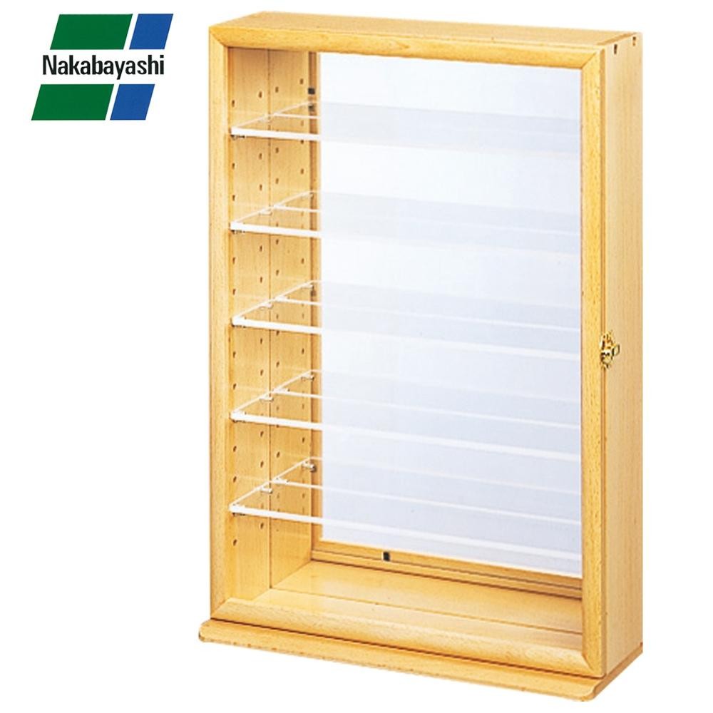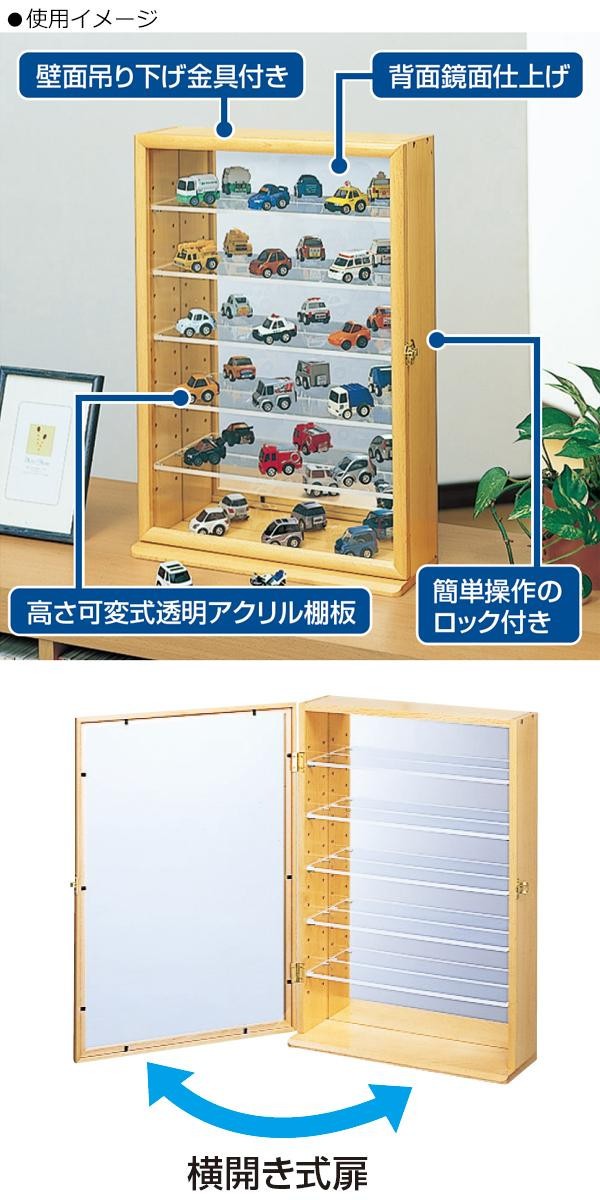 透明アクリル棚板を採用した木製コレクションケースです。 |