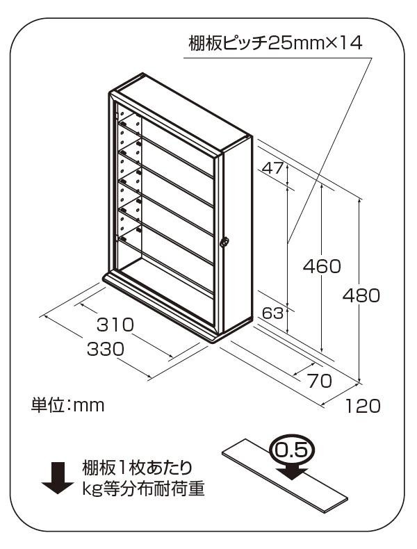 | サイズ | W330×D120×H480mm 個装サイズ:22×57×39cm |